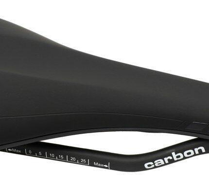 Závodní sedlo MAX1 Evo s Cr-Mo ližinami, nylonovou platformou a ergonomickým otvorem ve střední části.