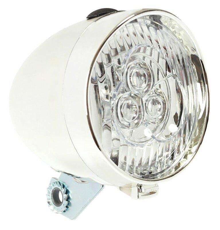 přední světlo, retro design, na baterie, 3 Led, chromové